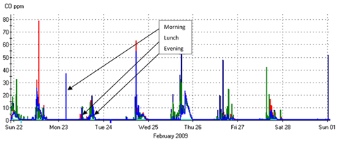 •CO concentration measured with at least one sensor per 5,000 ft2 with each sensor located where the highest concentrations of CO are expected.