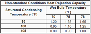 100°F Saturated Condensing Temperature (SCT), 70°F Entering Wetbulb Temperature |