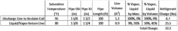 The system designer prepares the following analysis to calculate the charge size in the refrigerant piping.