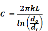 Conduction heat transfer texts gives the overall conductance C of length L of an annular insulation layer as:
