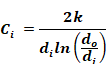 Dividing this by inside area, Ai=πdi L, gives the conductance per unit inside area: