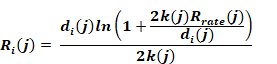 Equation 202 and Equation 203 would be equivalent if Equation 203 had the term Ri(j) in place of Rrate(j) As it is, Equation 203 gives the area weighted average Rrate, not Ri(j).