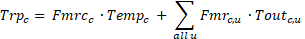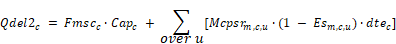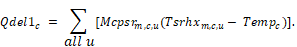 Qdelc = Fmscc∙Capc + ∑over u[Mcpsrm,c,u∙(Tsrc,u - Tempc)]