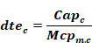 If the mode is heating or cooling, the temperature rise through the air handler heating or cooling equipment of system c at sensible capacity Capc is given by: