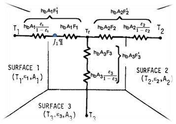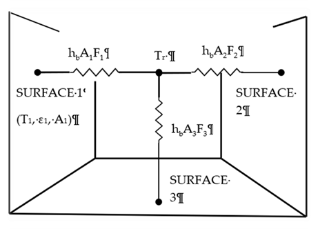 For black surfaces the radiant network is shown in Figure 8. For n surfaces, Tr floats at the conductance, , Ai Fi weighted average surface temperature: