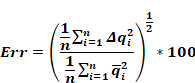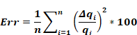 The second method, Equation 88, gives the rms of the percentage error in qi f each surfaces. This method increases the weight of smaller surfaces such as windows.