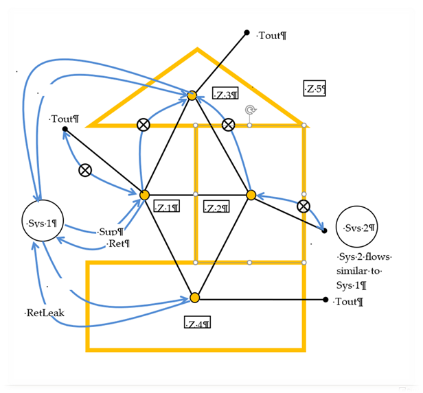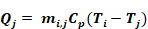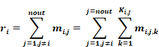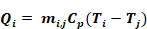 The mass flow rate from zone i to zone j (including j=nout) is designated as mi,j and can be positive (flow out of zone i) or negative (flow into zone i).