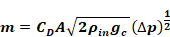 For an orifice, with fixed density of air along the flow path (from inlet to vena contracta), Bernoulli's equation gives: