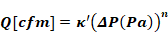 The following is based on Sherman (1998). English units are used herein. Measured blower door infiltration data is expressed empirically as a power law:
