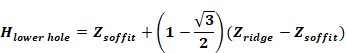 The method is generalized further to treat the tilted triangular surfaces assumed for hip roofs. In this case the lower Woloszyn hole, of area ELA/2, is placed at the height that is above ¼ of the area of the triangle. This can be shown to be a height of: