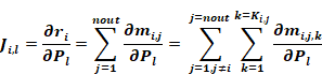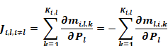 Consider Equation 174 for off-diagonal terms. Since i≠l, zone i's flow mi,j varies with Pl only if j = l. Thus setting lj = l,and i≠, Equation 174 reduces to: