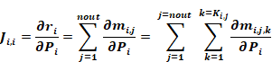 This shows that the diagonal elements use the derivatives of mass flows to the outdoors minus the off diagonal terms in the same column of the Jacobian.