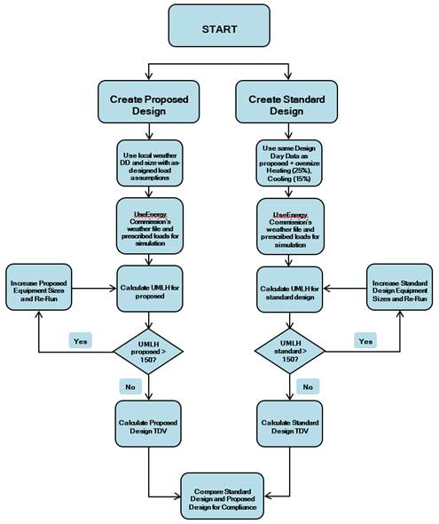 The general calculation procedure is illustrated below in Figure 2. The proposed design TDV energy use is compared to the standard design.