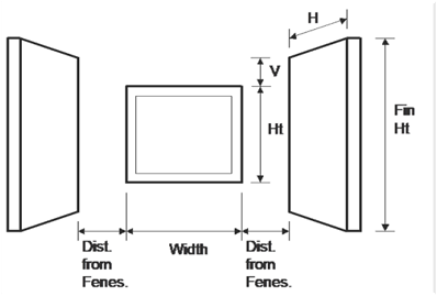 Software users enter a set of basic parameters for a description of an overhang and sidefin for each individual fenestration or window area entry. The basic parameters include fenestration height, overhang/sidefin length, and overhang/sidefin height. Compliance software user entries for overhangs may also include fenestration width, overhang left extension, and overhang right extension. Compliance software user entries for sidefins may also include fin left extension and fin right extension for both left and right fins. Walls at right angles to windows may be modeled as sidefins.