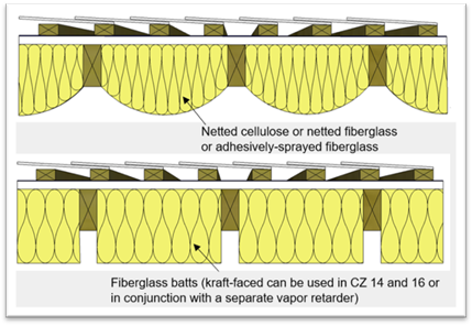 Batt and blanket insulation allows easy inspection, and installation errors can readily be identified and remedied, including breeches in the air barrier system that allow air leakage.