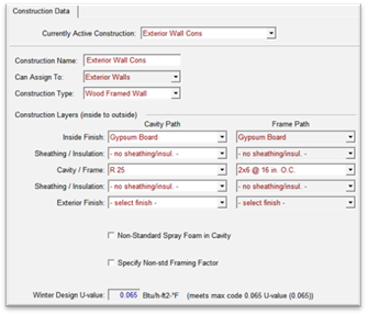 Overall assembly U-factors are determined by selecting the assembly type, framing configuration, and cavity insulation rating from the appropriate JA4 table, other approved method specified in JA4, or using the Energy Commission-approved compliance simulation software.