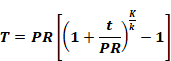 T = 2[(1 + 4.5/2)(0.40/0.29)– 1]