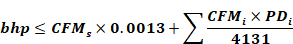 hp≤CFM_s×0.0015 (Variable volume systems)