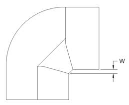 Figure 5-18 below illustrates “w” the dimension between the elbow sleeves, and Table 5-14 shows the minimum distances “w” for an acceptable sweep elbow.