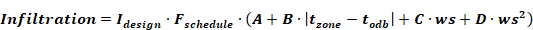 A data structure is required to define the effective leakage area model. Infiltration shall be calculated each hour using the following equation: