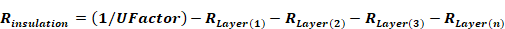 The area-weighted average of the roof construction assembly U-factors, defined by a series of layers, must be equal to or more efficient than the mandatory U-factor requirements of Section 120.7 of the standards for new construction, and Section 141.0 of the standards for alterations. Note that these U-Factor requirements assume an exterior air film of R-0.17 and an interior air film of R-0.61. Each layer specified must be listed in the materials database in the ACM Appendix 5.5A. New Construction