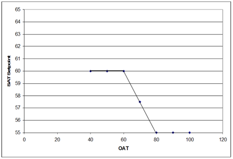 Figure 11: SAT Cooling Setpoint Reset Based On Outdoor Air Temperature (OAT)