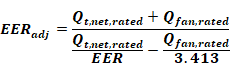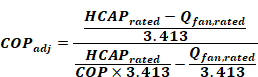 For all unitary and applied equipment where the fan energy is part of the equipment efficiency rating, the COP shall be adjusted as follows to remove the fan energy: