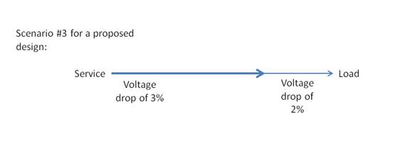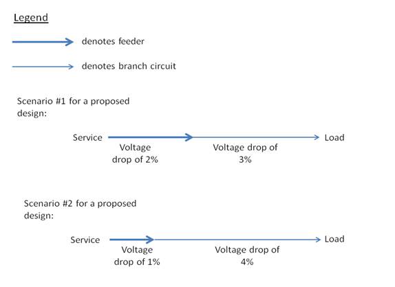 All of the above proposed design scenarios meet the voltage drop requirement of §130.5(c), as the combined voltage drop of the feeder and the branch circuit does not exceed 5 percent.