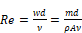 ν = viscosity ≈ 1.25E-4 + 5.54E-07T(degF); ft2/sec. = 1/6100 ft2/sec at 70-F.