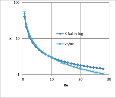 The first term, intended for portraying Re < 1 pressure drops, is the dominate term. The third term, intended for Re > 200, is relatively negligible, and the second term is a bridge between the first and third terms.