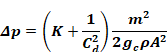 Adding Equation B-2 and Equation B-7 gives the total pressure drop for a window and screen in series: