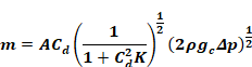 The single real root of the quadratic Equation B-15 gives the mass flow rate through a screen in series with a window-orifice as a function of screen and window properties and overall pressure drop: