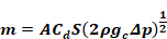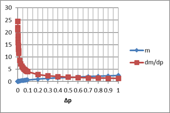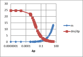 If Δp is taken as Δp=P1-P2, then the partial derivative of m with respect to is P1