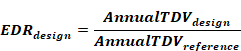 The EDR for a specific design is (generally) calculated as the ratio of the design’s annual-TDV and the reference building’s annual-TDV: